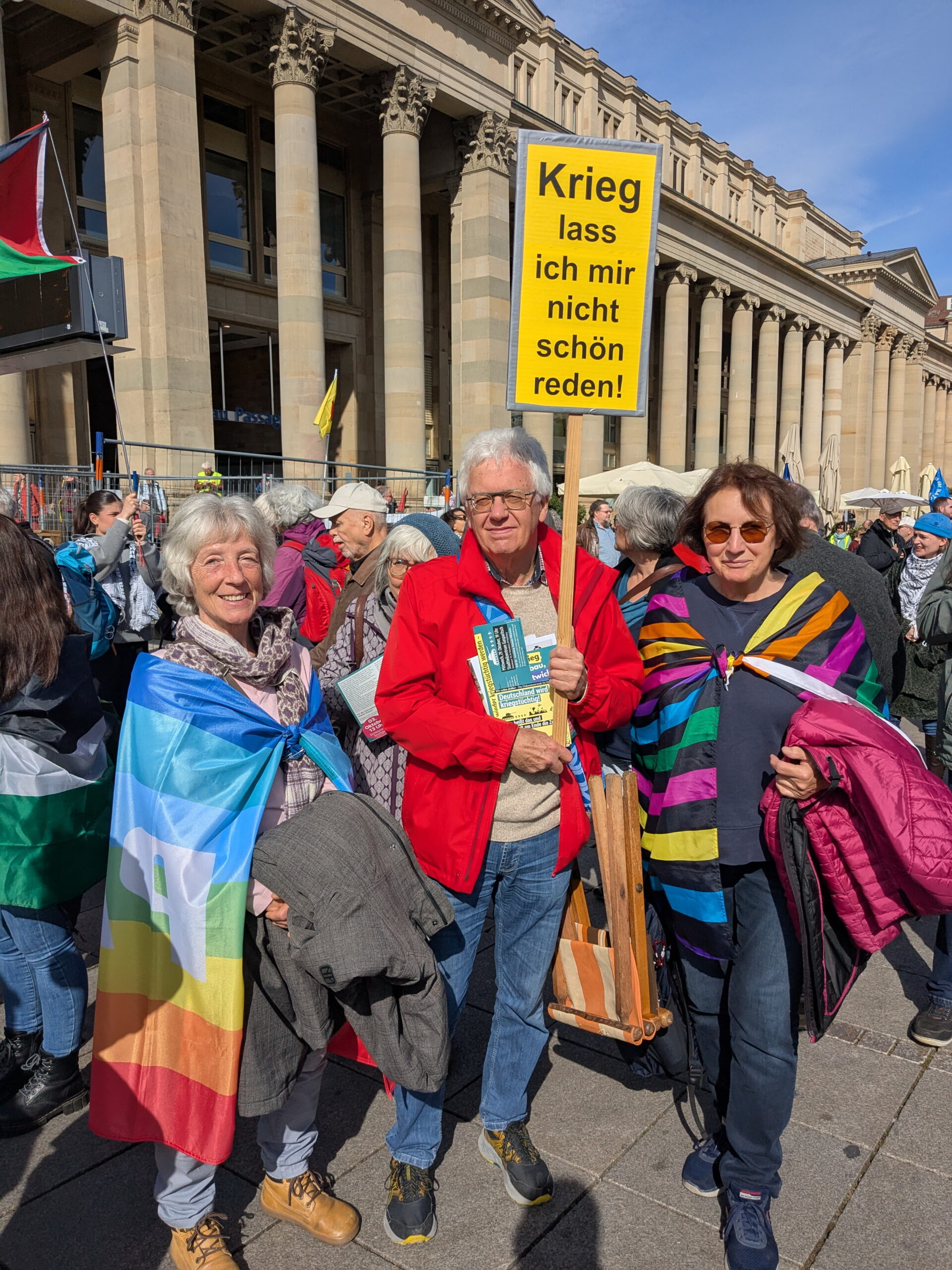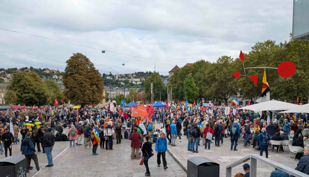 Wir – die Bruchsaler Friedensinitiative – nahmen am 3. Oktober 2025 in Stuttgart an der Demo gegen Hochrüstung und Kriegstüchtigkeit teil. Ein breites Bündnis aus 300 Organisationen riefen in Berlin und Stuttgart an dem Tag zu Friedensdemonstrationen auf und setzten ein unübersehbares deutliches Zeichen für Frieden und gegen Hochrüstung und Kriege.