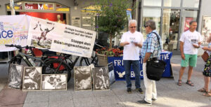 Mit weißen T-Shirts mit der Aufschrift: „WAR UM ?“ waren die Mitglieder der Friedensinitiative Bruchsal schon von weitem in der Fußgängerzone in Bruchsal erkennbar. An drei Tagen (Samstag, den 2.8., Mittwoch, den 6.8. – dem Tag des ersten Atombombenabwurfs durch Amerika 1945 auf Hiroshima – und am Samstag, den …